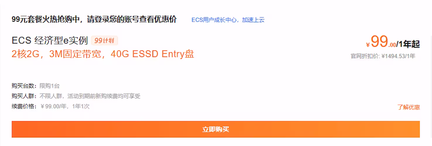 这时候,阿里云推出了99元建站计划,耐不住手痒,我也入手了一个。